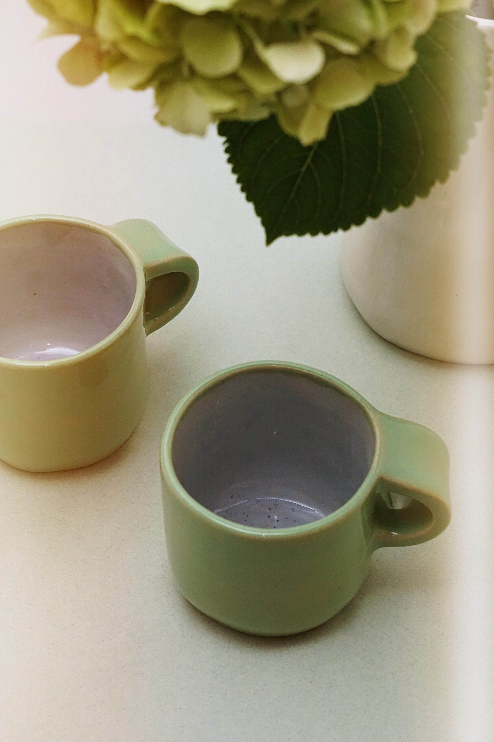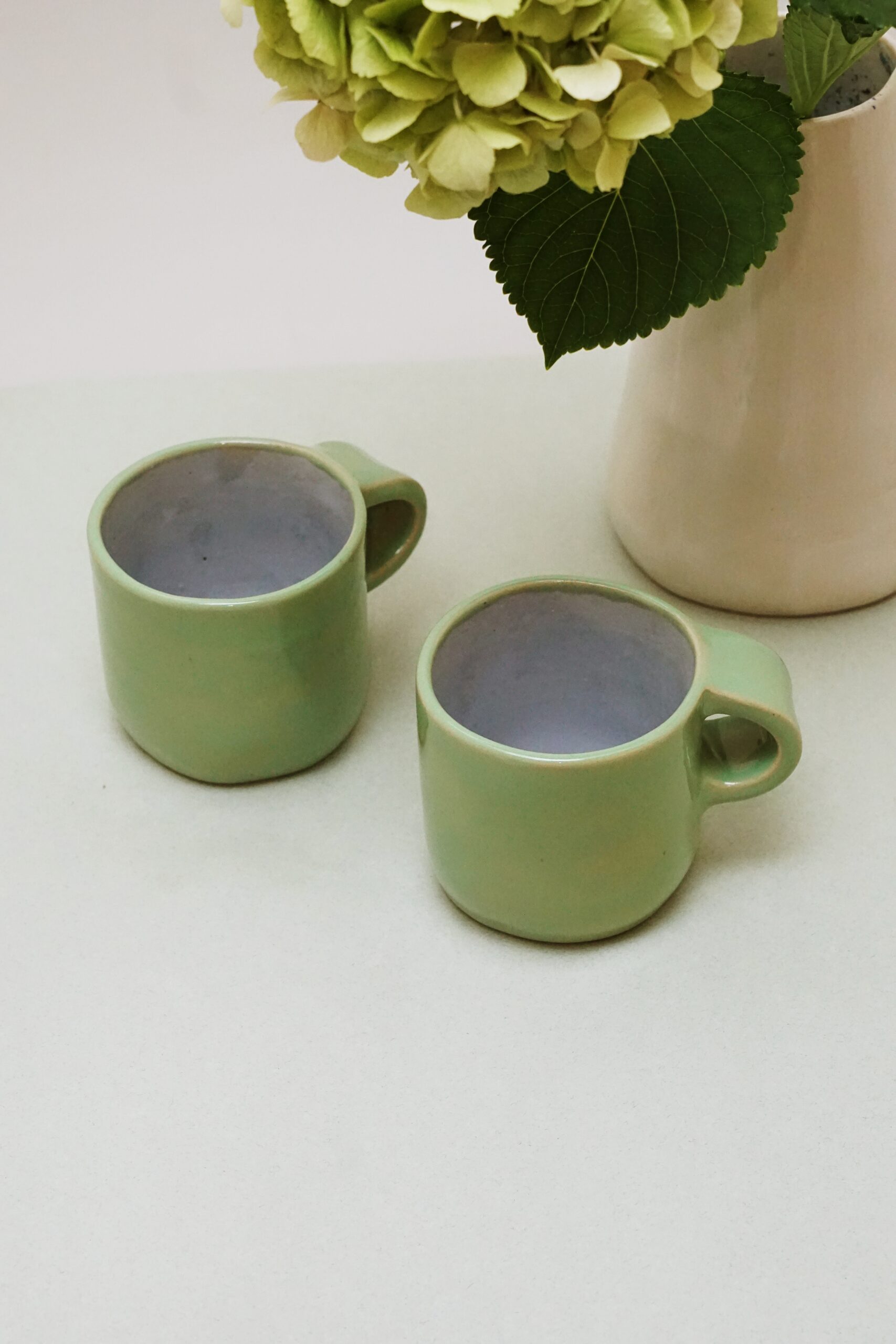 Lepiony ręcznie kubek z masywnym uchem.